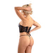 Fantasy Lingerie Leather Look and Lace Underwire Corset with Matching G-String Panty M