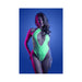 Fantasy Lingerie Glow Nocturnal Keyhole Halter Tie Teddy with Snap Closure Neon Lemon S/M