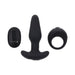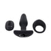 A powerful duo of vibrating remote-control toys designed for multiple possibilities. Supple and smooth, the plug tapers to a rounded, textured tip and finishes with rumbling, rotating beads at the neck before widening to a safety base handle. The ABS ring is chunky on top and narrows at the bottom curve for maximum comfort. Each 10-speed shape is independently controlled for a custom experience.