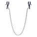 Squeeze and please nipple clamps will have you begging for more as they straddle the fine line between pleasure and pain with perfection. These nipple clamps are designed for bondage beginners and pros alike - they're easy to use and put pressure just where you need it for extra intensity during play. These clamps measure 2.2 in. (5.5cm) in length with a chain length of 16.5 in. (42cm). Each clamp has a width of 0.98 in. (2.5cm) and the pressure adjusting screws allow you to tailor the stimulation to suit your experience level and your mood. These clamps also have soft comfort pads to the tips that allow you to focus on your pleasure as you play in comfort. They have a compact design and are free from phthalates and latex. These PVC and aluminium clamps add extra sensation to your partner pleasure but they also add visual impact and are a stunning addition to any bondage look when worn as a stimulating erotic accessory.