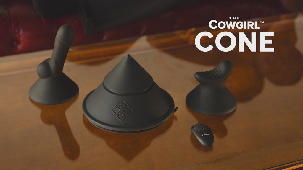 The Cowgirl Cone is an ergonomically designed sit-on, Lay-on, rub, or lean-on external stimulator that provides body-quaking, external stimulation with countless ways to ride at any angle you desire. The ultra-wide suction base affixes to any surface for endless position possibilities and lets you take the reins of your pleasure with the included remote control.