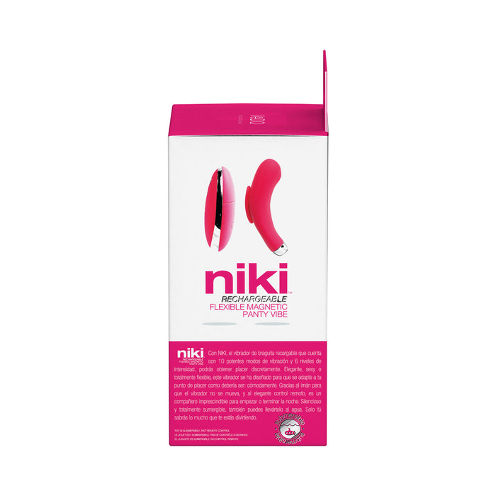 Niki is the most discreet and comfortable panty vibe on the market. Sleek, sexy and silky smooth, this oh so cute vibe molds perfectly to your body. That’s right, it’s beautifully bendable and designed to fit your pleasure button the way a panty vibe should…comfortably. Powered by 10 vibration modes with 6 intensity levels, this panty vibe is always ready to tease and please your hot spot. Niki is completely submersible. USB rechargeable, cable included. Travel lock feature with manual in box. One year warranty. COLOR: PINK